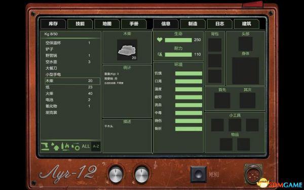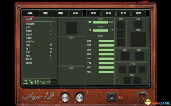 你的角色会在活动中不断损失体温、饥饿、疲劳等属性值。