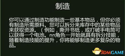 制造则是用你收集的原料制作生存必需品以及建筑。