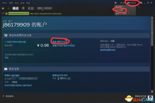 首先,在你的steam右上角会有你的账户名称,点开它。进入到你的消费历史记录