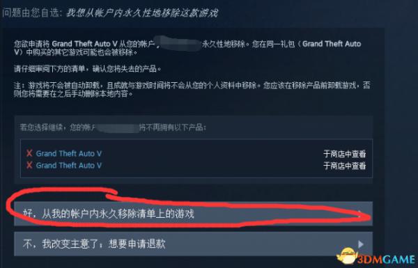 点好,然后游戏就永久删除了,不过其实还是可以恢复了,不过没卵用。因为你要新建一个号必须是新的key然后,回去你的steam库,点gta右键会发现开始游戏已经变成了购买,那就去购买吧,新买一个号,如果你有库存礼物就添加到库里。