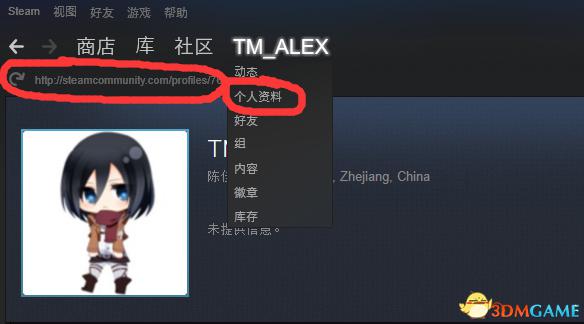 然后点击你的steam名字,会出现个人资料,打开。如图红框就是你的64ID