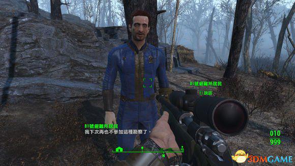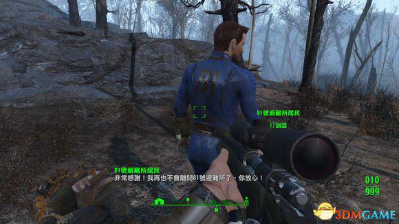 75:进入81号避难所后,野外刷新点会随机遇到4个掠夺者抢劫1个81号避难所居民,就吓后他被废土吓坏了,要回避难所再也不出来了;(当然你也可以不救他让他被掠夺者杀死夺取他身上的81号避难所连身装)