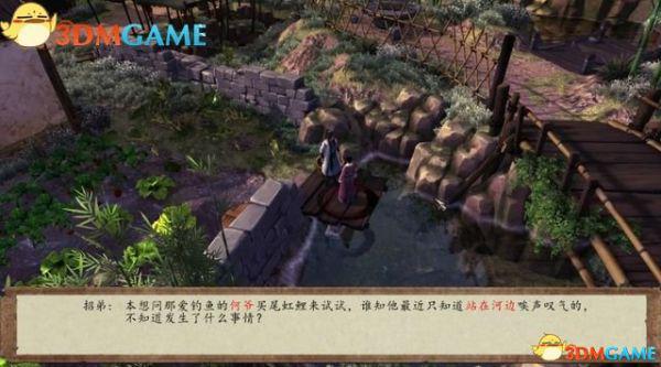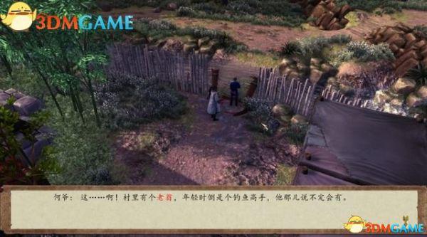 来到河边找何爷谈话,得知他的钓竿弄丢了,想要虹鲤的话,得帮他找支钓竿。