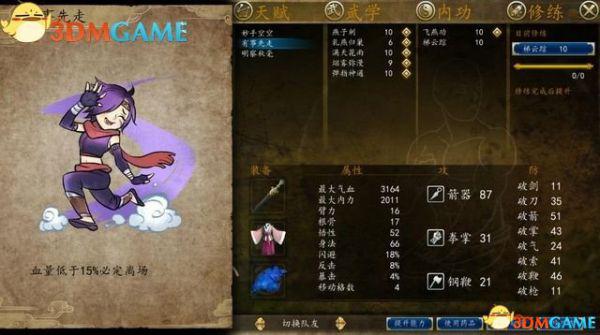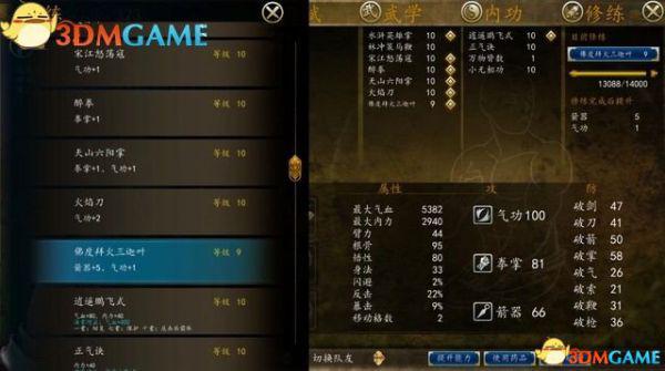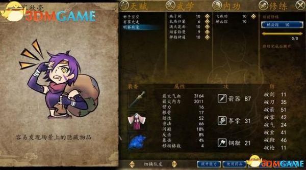 本作简化了本传中繁杂的养成项目,将它们整合成了装备、能力、内功、武学这4个内容。