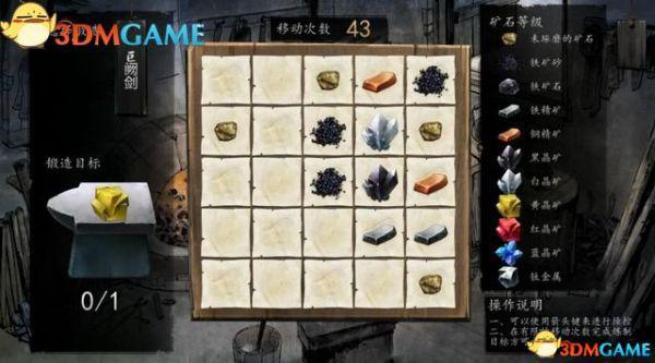 锻造兵器需要玩一个合成矿物的小游戏,高级的装备,合成的难度和步骤会多一些。