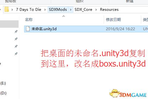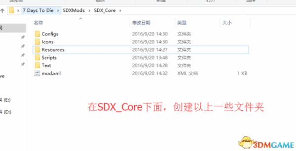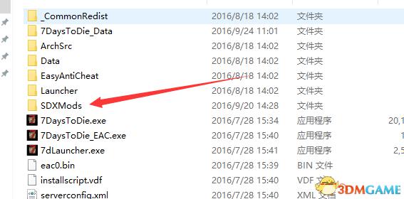 把SDX0.6里面的“放到游戏目录下”文件夹里面的“SDXMods”,复制到“7 Days To Die”文件夹,复制后如图: