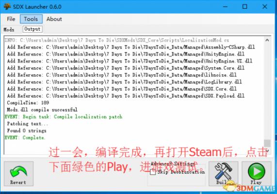 现在已经做出来了可以供七日杀使用的unity3d文件,接下来使用SDX工具。