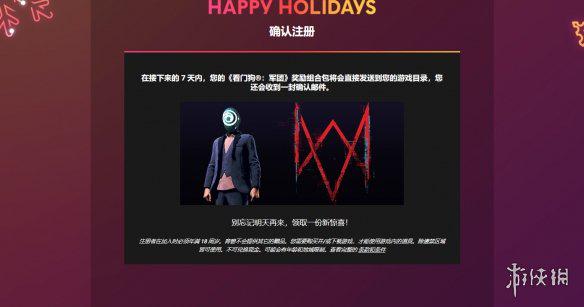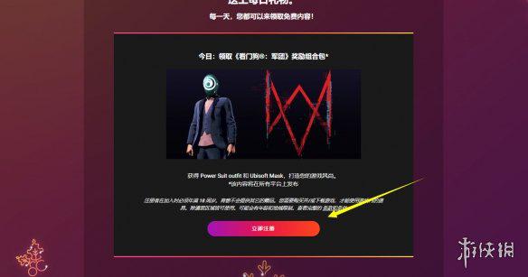 今天赠送的物品为看门狗军团奖励组合包,其中包括游戏中的育碧套装:服装+面具。