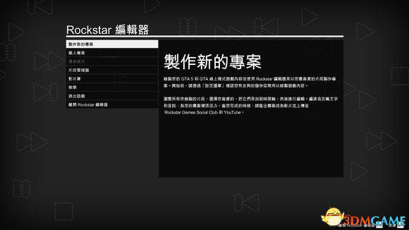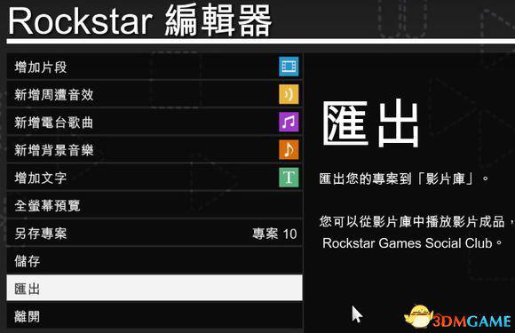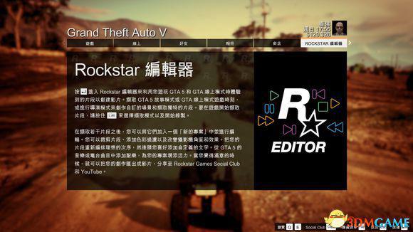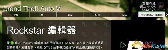 在故事模式中,按ESC 进入菜单,选择Rockstar编辑器