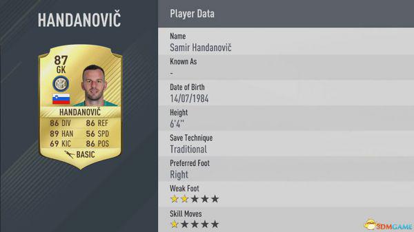 FIFA 17门将TOP20能力值一览 哪位门将排名第一