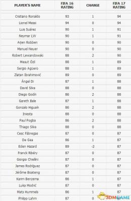 FIFA 17全体球员数据值一览 FIFA 17哪位球员最强