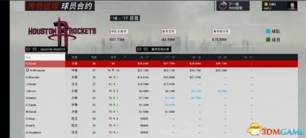 至于如何签合同呢,我开档选的是火箭,只留了4个人,其它全部都清掉了,应该是只剩下哈登,卡佩拉,德克耳,哈雷二 清出了70M+的空间.