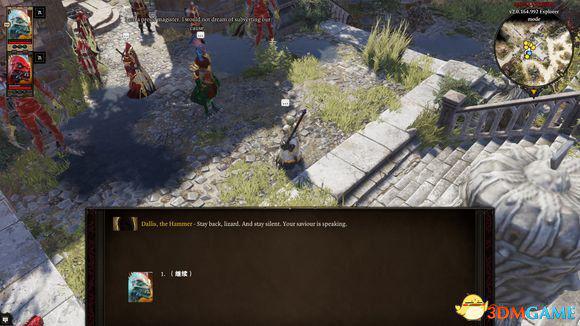 第一件事就是找这个蜥蜴人加入队伍,他是个战士。不加的话还是有点的难得,一个人和两个人的差距不是一点半点。而且他给他弄把好的双手武器也是主要输出。