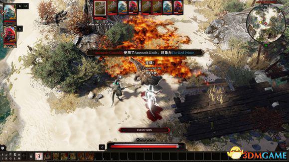 然后来到南边的海南,有三条鳄鱼。利用油桶加火焰,一回合炸死三个。
