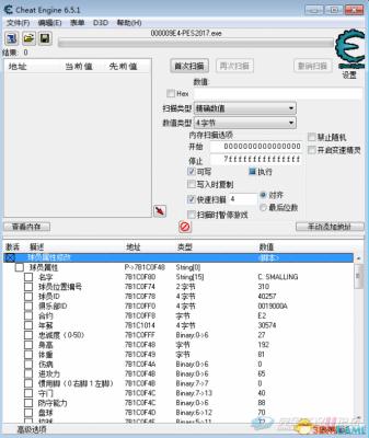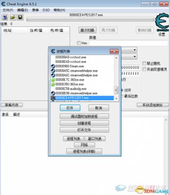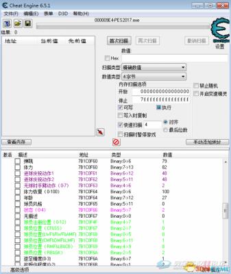 首先进入游戏的大师联赛或者一球成名模式,打开CE修改器,选择进程PES2017.exe,再打开我的CT文件(下载地址: