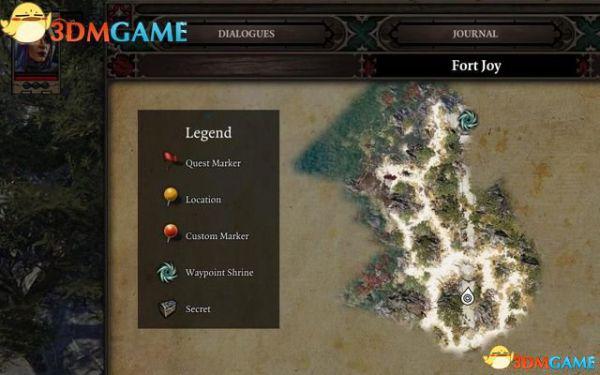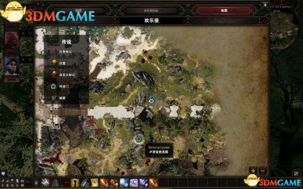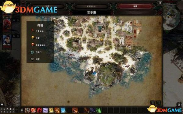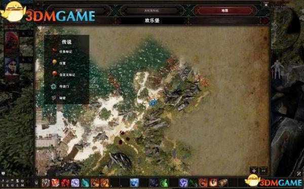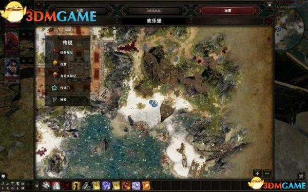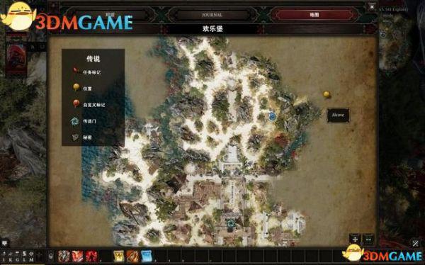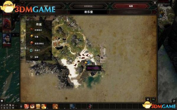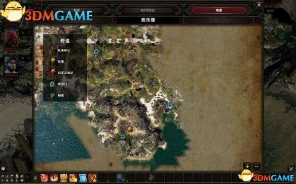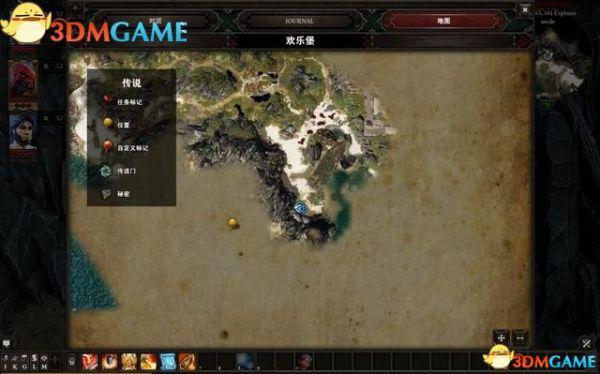 这里是你当前的冒险地图,上面有你的任务标记、地点名称、定制的路点和秘密宝箱等等。用鼠标滚轮可实现无级缩放。