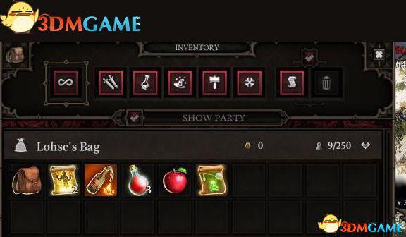 这里陈列着你身上携带的所有物品,并能进行分类。