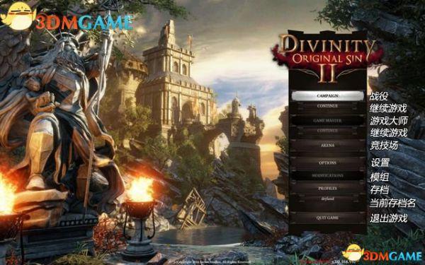 进入到《神界3:原罪》的主菜单,笔者在此逐项介绍选项。