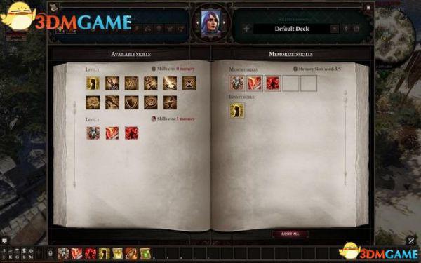 此菜单列有当前你可学习的技能,以及你的记忆槽中装备的技能。