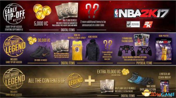 NBA2K17哪个版本好 NBA2K17各版本预购奖励区别一览