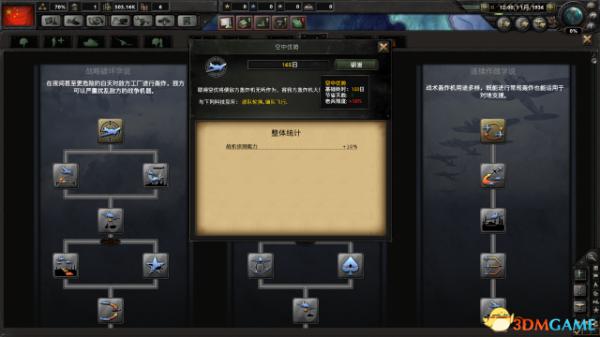 如上面的图中我已将空中优势的研究进程改为150天,我们将修改后的存档保存,再次进入游戏,读取该存档。