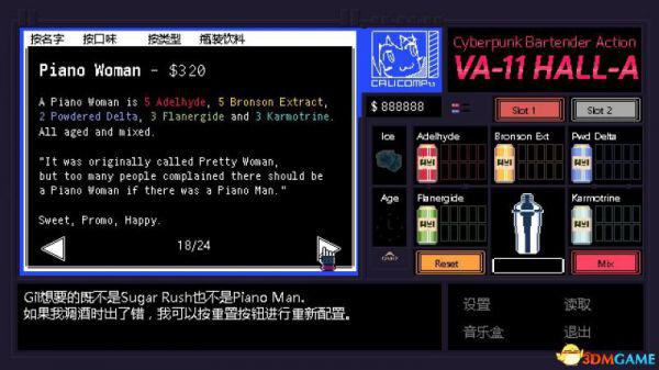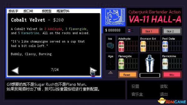 《VA-11 HALL-A:赛博朋克酒保行动》图文攻略 全调酒配方教程攻略(含“菜单/界面介绍”“调酒师教学”“全调酒配方”“流程试玩”)