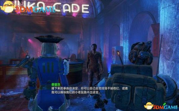 前往城中的核子电玩游乐场找费里茨交谈,他对主角通过地牢考验的事迹表示钦佩,委托主角前往竞技场干掉一些人。