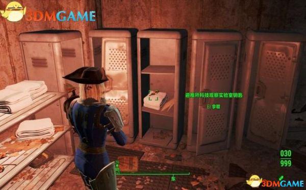 出口在储藏库的左边,在后面的一只小控制柜上拾取钥匙来开门。
