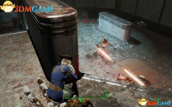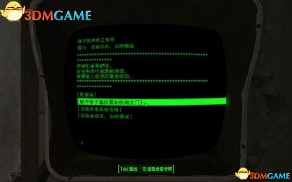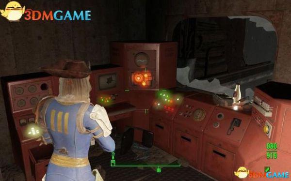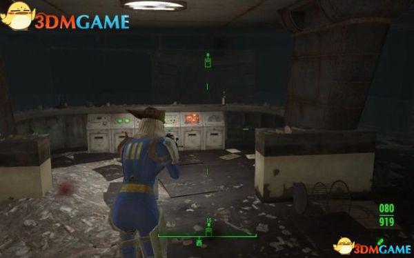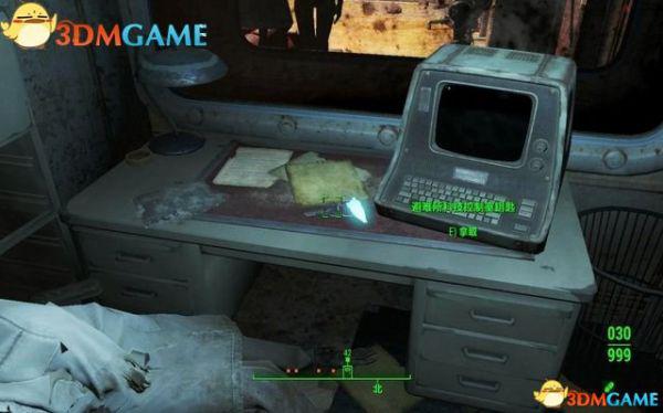 沿着塌掉的楼板到核子世界通道,先调查左边办公桌上的电脑终端,看看炮塔是否在启用状态,如果是,就将其关闭。