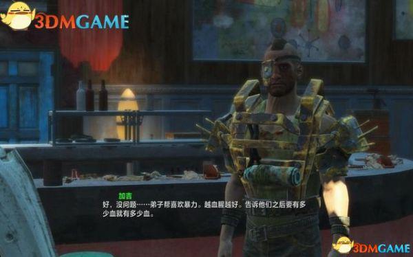 与加吉交谈,得知前任科尔特在掌权后便心满意足,不思拓取,懒得去整顿整个游乐场。这里的掠夺者并不满足于此,争斗频发,变得一团糟乱。因此加吉希望遴选大头目取而代之,引领他们打开一个新局面。