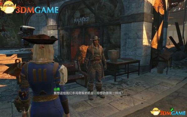 在地上发现一名叫哈维的伤者,说在核子世界遇到了掠夺者,他们劫持了他的家人,拜护主角前去拯救他们。如果你提出给他治疗,会遭到婉拒。其实他是个骗子,并没有负伤。