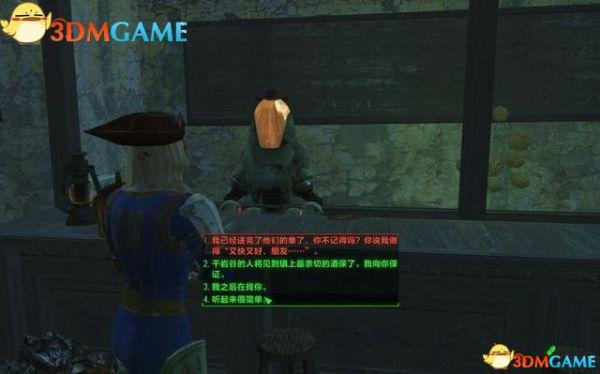 这个小支线在初次进入核子城的市场区自动触发,有人传出口信,需要主角的帮忙。