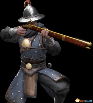 火枪兵射程较弓箭兵略近,但是射击精度高,可对中近程的敌人造成高额伤害,同时可以使用闻名遐迩的“三段击”阵法,是实战中不可缺少的中近程压制性火力源。
