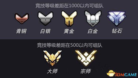 为了给各个水平的玩家都提供一个公平的游戏环境,我们将在竞技比赛中加入组队限制。对大部分竞技段位来说,如果相互之间的竞技等级差距超过1000 级,那么就无法组队比赛。而在大师和宗师段位中,这一差距被调整为500级,并且钻石或更高段位的玩家无法与尚未完成定级赛的玩家组队进行竞技比赛。