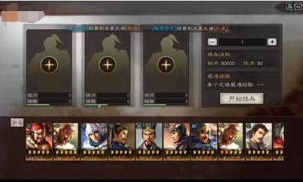 演武场最多可以练兵3名武将,但是这样的话8w经验则会被这三名武将所平分。单个武将的满体力可以完成4次练兵,体力消耗完了就不能练兵了。