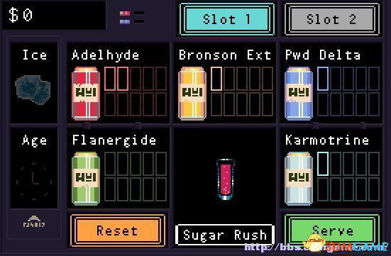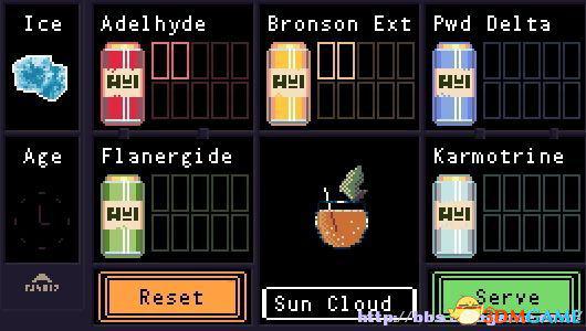 先以SUGAR RUSH 为例(因为难度较低且没有其他操作),基酒名字对照右边的吧台即可。按份数添加(教学部分有大杯的教学,在此不做赘述):