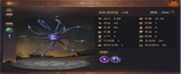 魔眼祭坛:魔眼祭坛是生产2阶兵种,暗影凝视者的地方。2级主城即可建造。