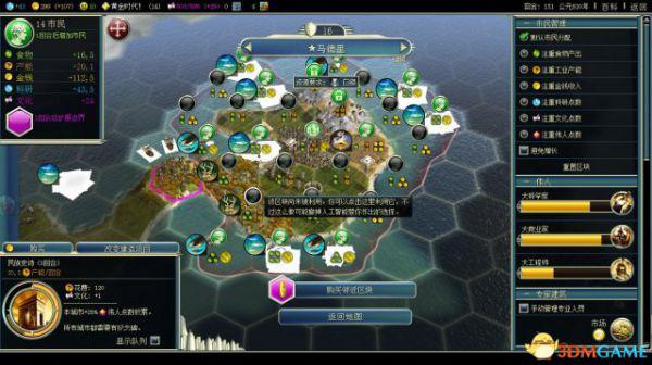 文明5的最核心的数据,粮食(苹果)和产能(锤子),粮食与人口直接相关联,只有人口上去了,城市内的地块才能转化为实质性的产出;只有产能上去了,城市才能建造出各式各样的建筑、生产出各式各样的单位。简单来说,粮食是提高产出的能力,产能是转化产出的能力。