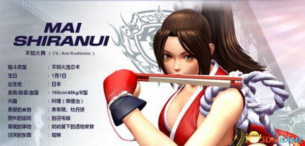 继承了不知火流忍术的女忍者。以华丽的动作与妖艳的服装将对手玩弄于股掌。战斗方式的信念以大型扇子为武器,「舞如蝶,刺如蜂」。和安迪之间的恋情的发展也很令人在意…