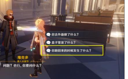 1、进入大教堂,与维克多对话,选择第三个问题才能开启任务;
