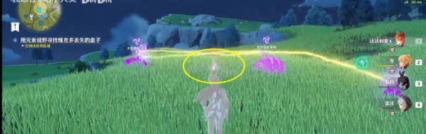 3、接着继续直走,打开元素视野,即可看到一群史莱姆围着的第二个丢失的盒子;
