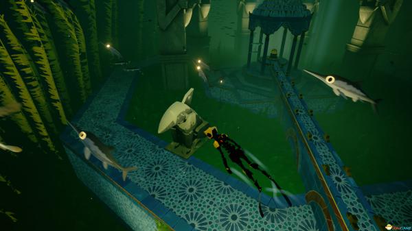 水下长梯右侧可找到这处水潭。释放旋齿鲨。