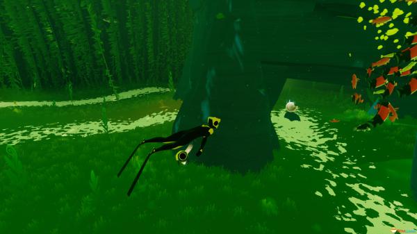 继续潜游,直到看到这处无法互动的雕像,从草丛穿进去,贝壳在角落里。