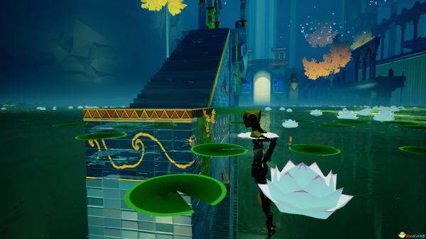 在其中一处水渠机关前方,可找到游戏的最后一处水潭。