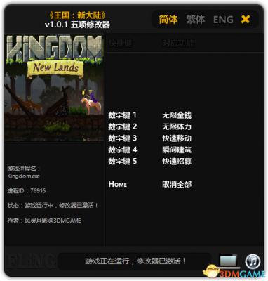 王国:新大陆修改器 无限金钱体力瞬间建筑快速移动