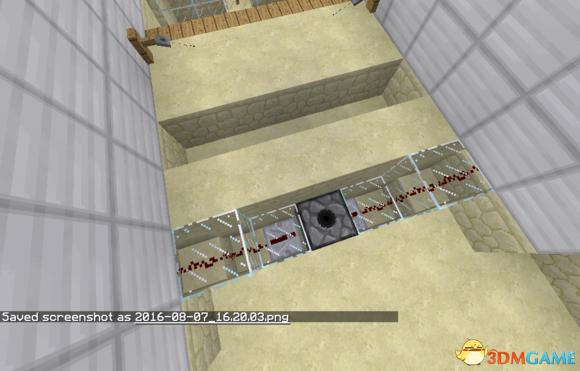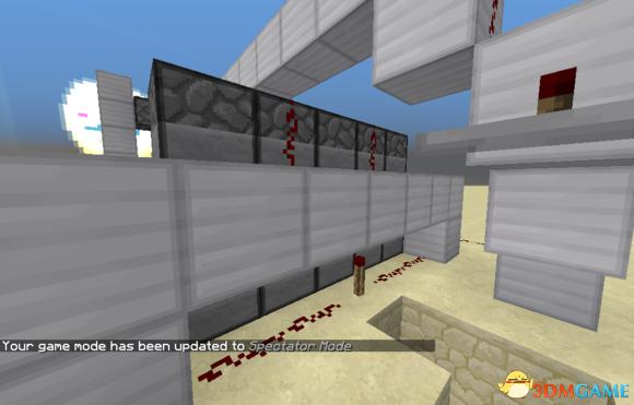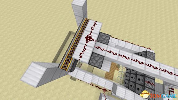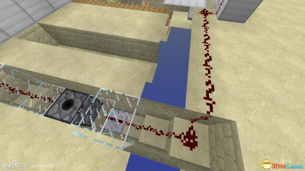 最后一条线路就是连接发射水了,中继器给方块充能,触发发射器。