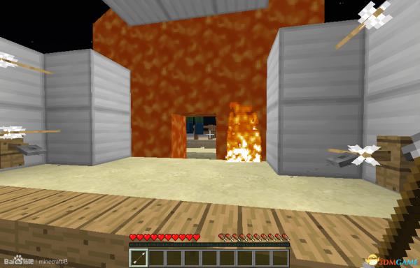 这里有一个按钮,连接岩浆和水的发射器就可以在室内关闭机关。