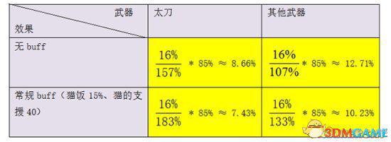 从这里可以发现斗魂只要有25%的覆盖率就能保证收益持平;算虽这么算,但实际应用中并非如此,因为我们需要考虑更多的东西,比如装备的选择、副技能的搭配,这么一来斗魂和攻击就并非是能在同装备条件下随意替换的技能。