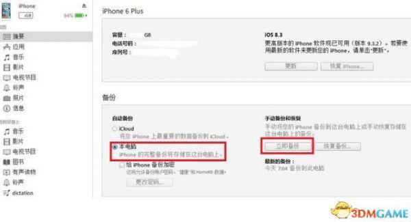 用itunes(手机连接到电脑上自动下载)将手机备份到电脑,如下图所示: