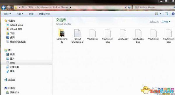 找到存盘目录,我是win7系统,在文档/my games/fallout shelter目录(如果不是,搜索一下fallout shelter目录):